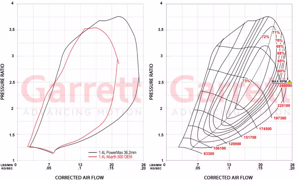 Supports up to 250 BHP | 168 kW, with a +26% increase in compressor flow compared to the MGT1446 turbo, delivering improved performance potential while maintaining factory drivability.